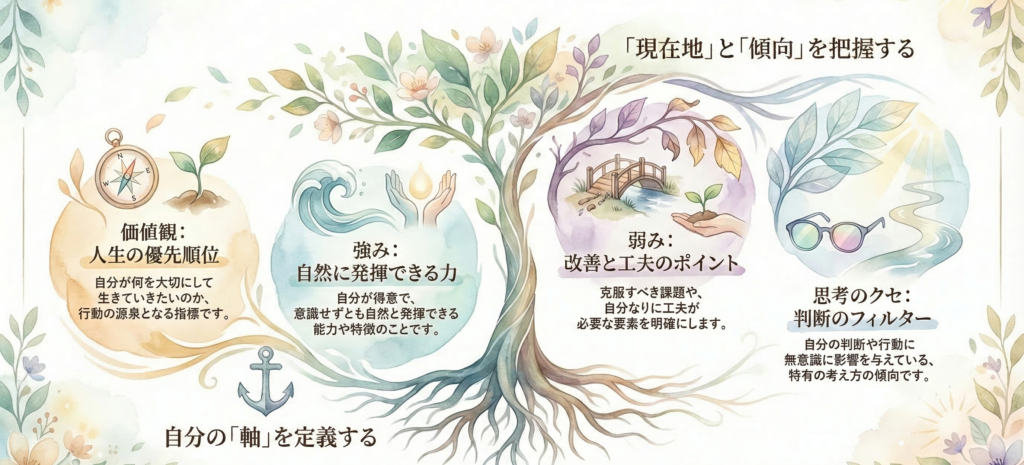 自己省察: 「価値観・自分の強み・弱み・思考のクセ」を